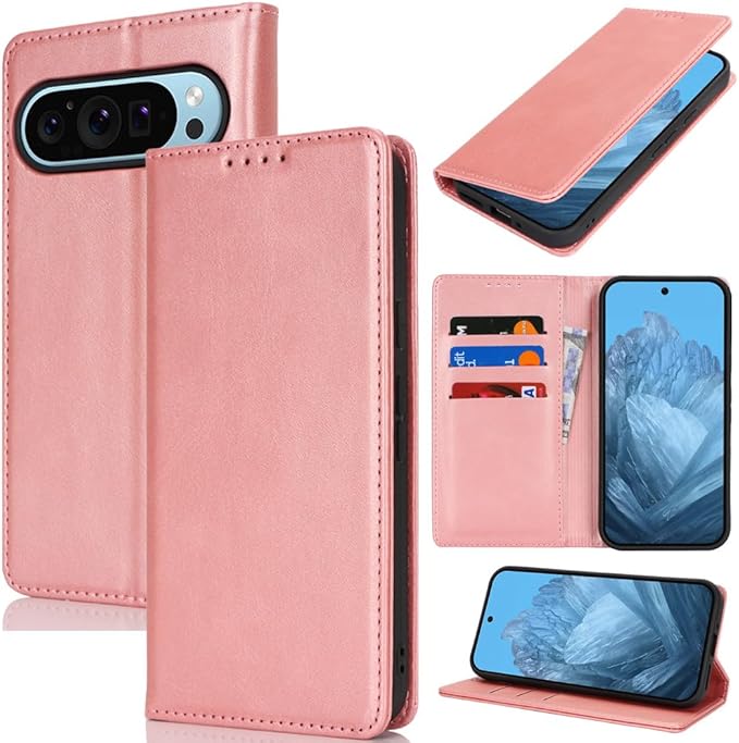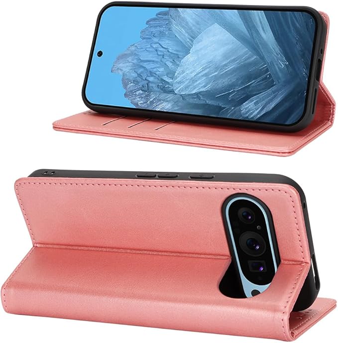対応 Google pixel 9 pro ケース 手帳型 スマホケース グーグルピクセル9プロ カバー 手帳型 カードスロット、キックスタンド レザー(ローズゴールド)