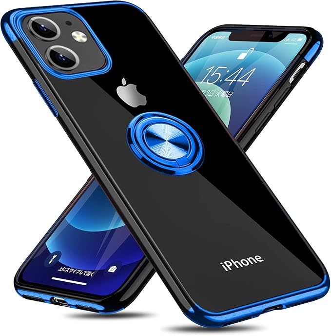iPhone 11 Pro 用 ケース リング付き クリア 耐衝撃 スタンド機能 透明 TPU 車載ホルダー対応 落下防止 防塵 薄型 軽量 一体型 変形防止 全面保護カバー アイフォン用 ケース 青 W-YX-10-05 | etshop