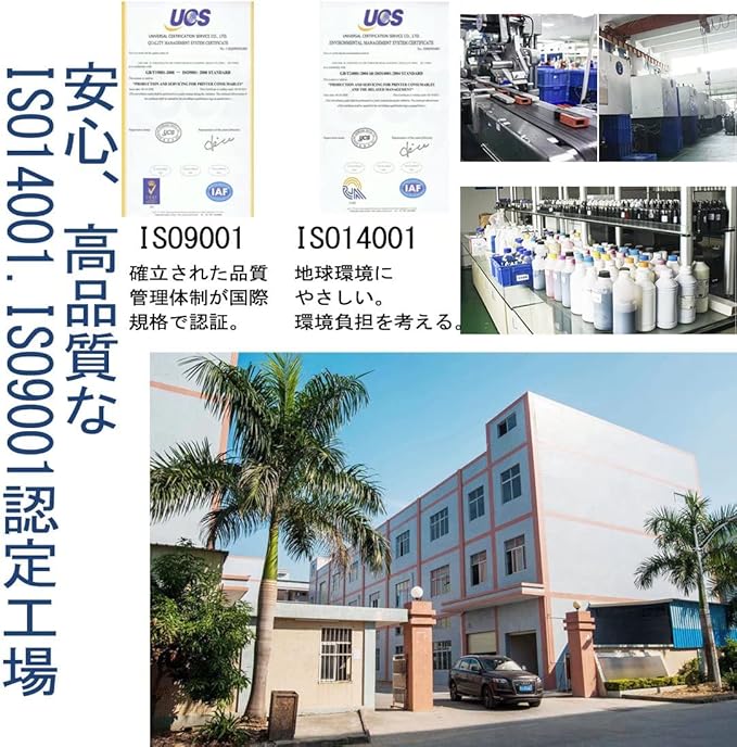 国際標準認定: 当店で扱う互換洗浄トナーカートリッジは、ISO14001環境、ISO9001品質マネジメントシステム国際標準化機構認定工場と最新の設備によって、厳しい品質管理のもと1つ1つ丁寧に製造している、高品質と高い信頼性の洗浄インクカートリッジです。 提携する工場は取得した基準:ISO9001、ISO14001、SGS、世界基準STMC、ヨーロッパ基準CEなど当店の製品に関して、お気軽にお問合せください。※ご購入日から1年間の保証期、万か一不良があった場合、新品と交換 もしくは 返金対応します。