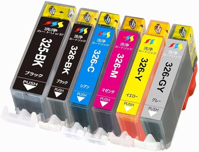 セット内容:洗浄インクカートリッジキャノンCanonBCI-326+325/6MP6色マルチパックセット 互換洗浄インクカートリッジ合計6個セット キヤノン インク 326BCI-326XLBK細 ブラック BCI-326XLCシアン BCI-326XLMマゼンタ BCI-326XLYイエロー BCI-326XLGYグレー増量タイプ Canonキヤノン インク 325 BCI-325XLPGBK 大増量ブラック