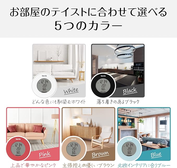 測定範囲:温度/-5.0~50.0度・湿度/20~95%、過去の最高/最低温湿度表示、時計表示、快適度表示、マグネット付き