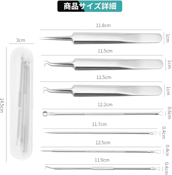 角栓取り 毛抜き ニキビ取り 7本セット ピンセット 顔 スティック 収納ケース付き ニキビ針 抗菌ステンレス 黒ずみ 角栓除去 鼻ケア 毛穴ケア専用キット アクネ プッシャー ネイル メンズ レディース 兼用 角栓リムーバー 携帯便利