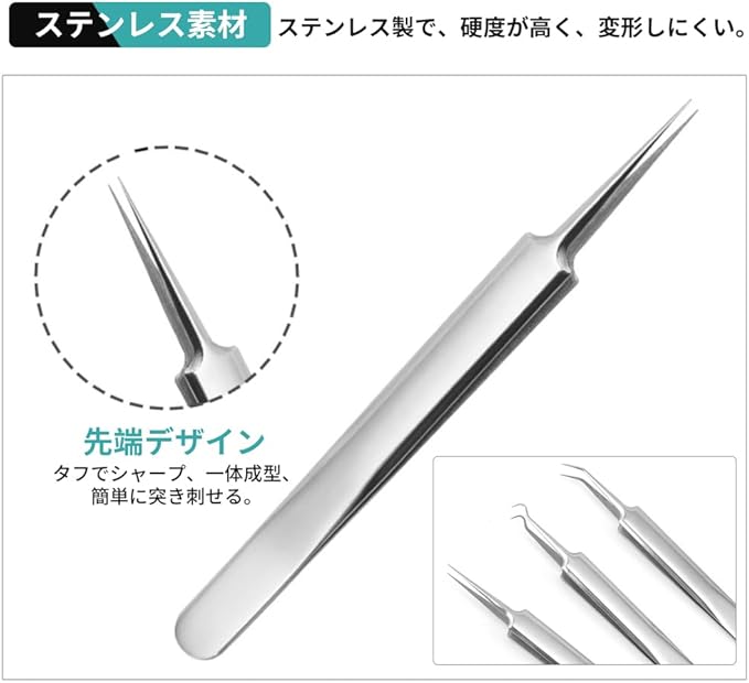 【ステンレス製】ステンレス製で、錆びにくく、炎症や感染を防ぐために、使用前後ツールを消毒することが必要です。