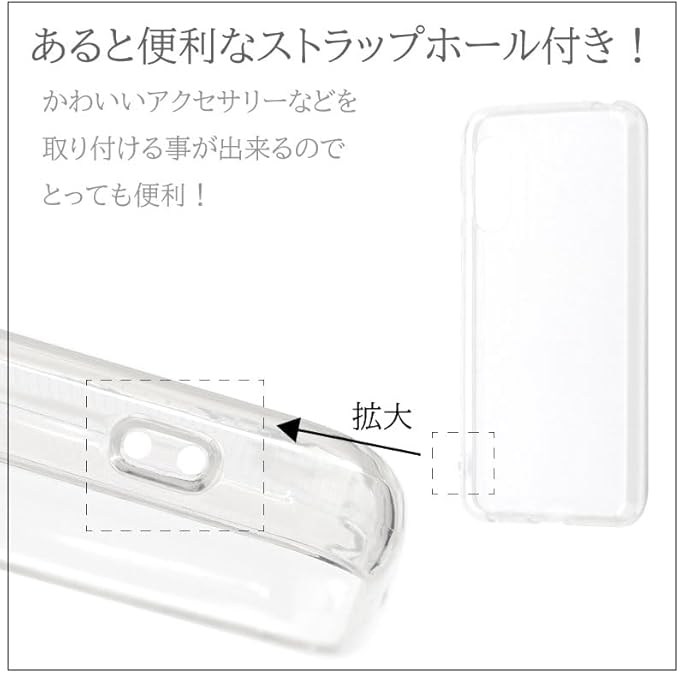 衝撃やキズ、埃から守る!TPUクリアケース。 シンプルなクリアソフトTPUケース。衝撃やキズ、埃などからしっかりとスマホを守ります。 もちろん、装着したまま充電や各種ボタンの操作も行えるようにデザインされています。 クリアカラーのため、スマホ本体のカラーやデザインの良さを損ないません。 ケース内側のマイクロドット加工でケースと本体の密着痕の発生を防ぎます。 ※密着痕が全く発生しないわけではございませんのでご注意ください。
