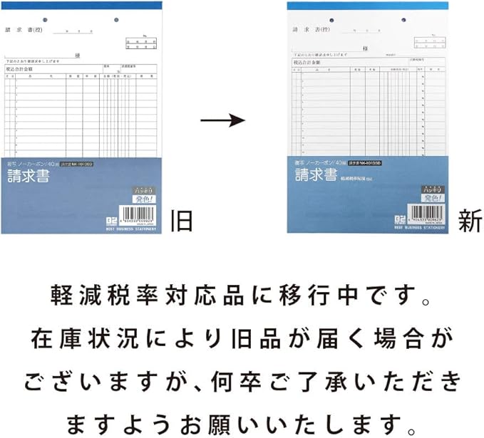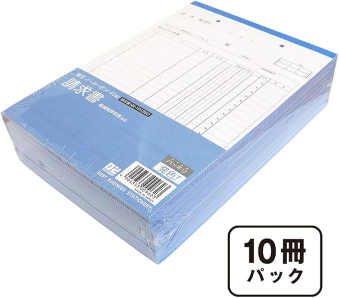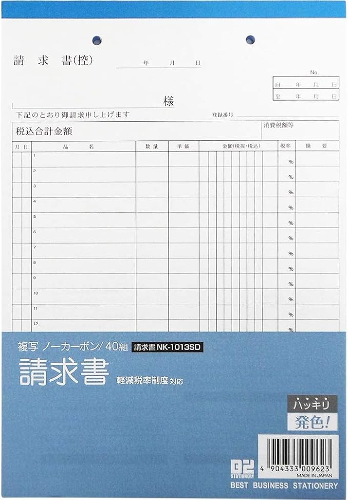 シンプルで使いやすい請求書。1冊あたり40組綴り。穴あきタイプでファイリングも簡単。