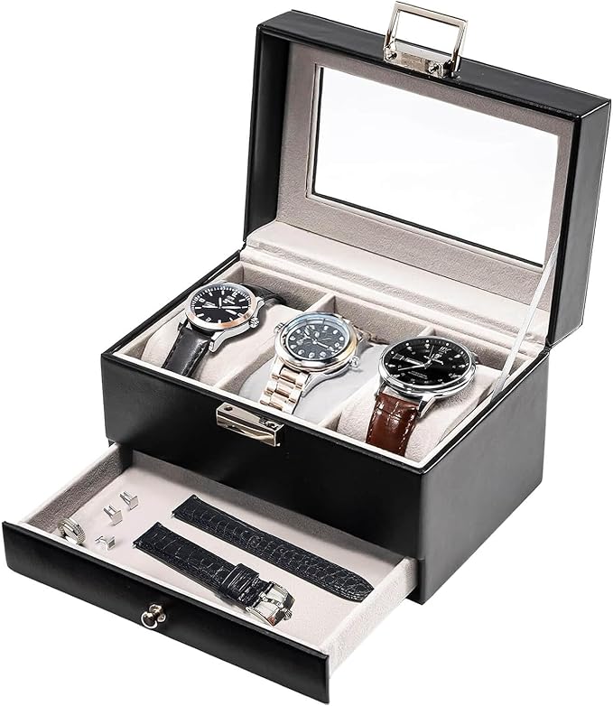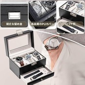 Mocamoro 腕時計ケース 3本用 2段式 ウオッチボックス 男性 時計コレクション ガラス天板 ディスプレイ