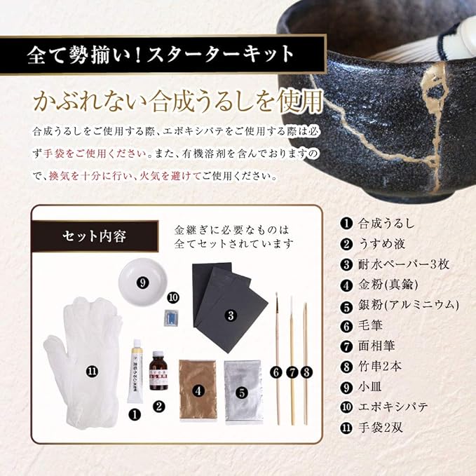 初心者のための簡単金継ぎセット 全11種 取扱説明書付き