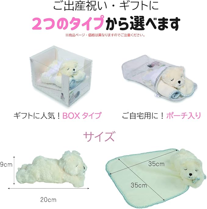 【プレゼント用】ご出産祝い、誕生日祝い、ベビーシャワーギフトとして最適です。贈答用のギフトBOX入り、もし運びに便利で衛生的なポーチ入りと2種類のパッケージをご用意しました。