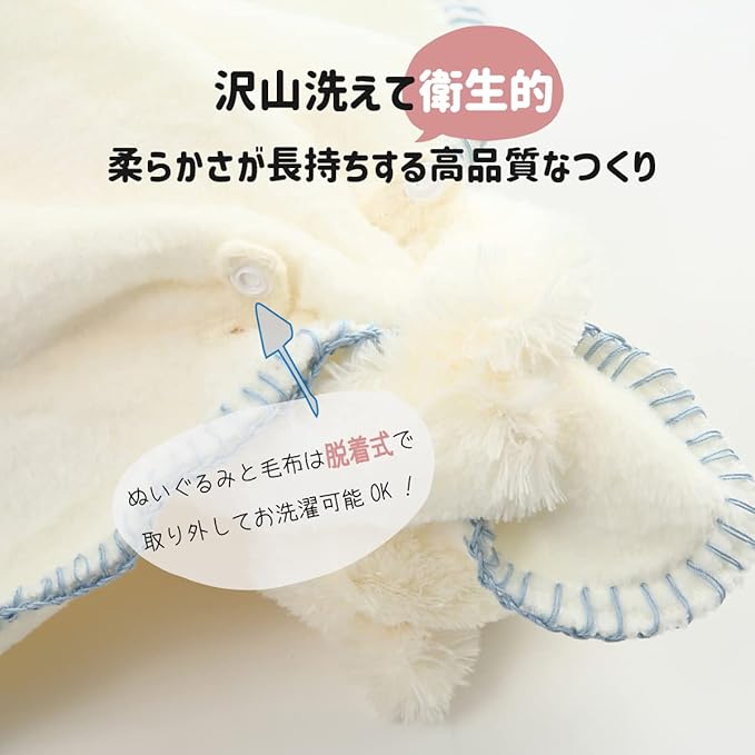 【衛生的】綿100%の毛布は着脱式になっているので、よだれなので汚しても取り外して選択することが出来るのでとても衛生的です。もちろんホルマリン検査済です。