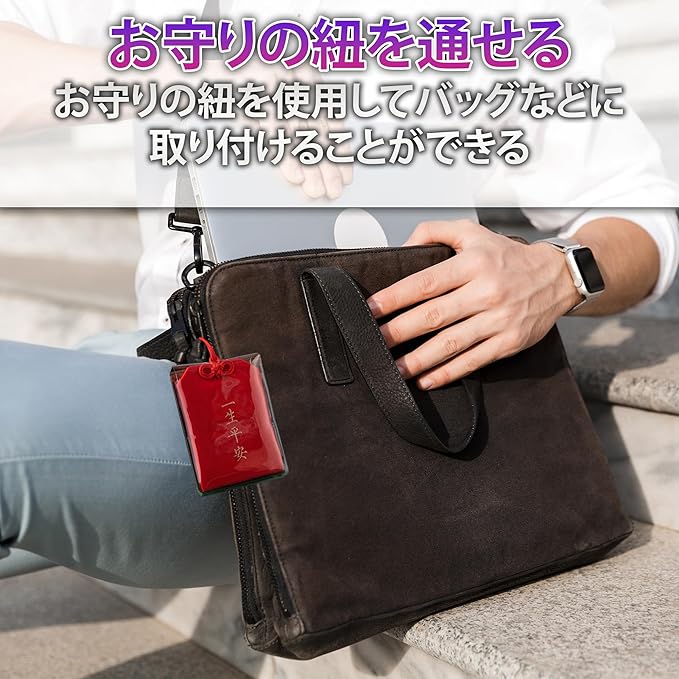 お守りの紐を通すことができる:こちらのカバーにはお守りの紐を通すための紐通し穴が付いておりますので、お守りの紐を使用してバッグなどに取り付けることができます。お守りを常に携帯したい方にオススメです。