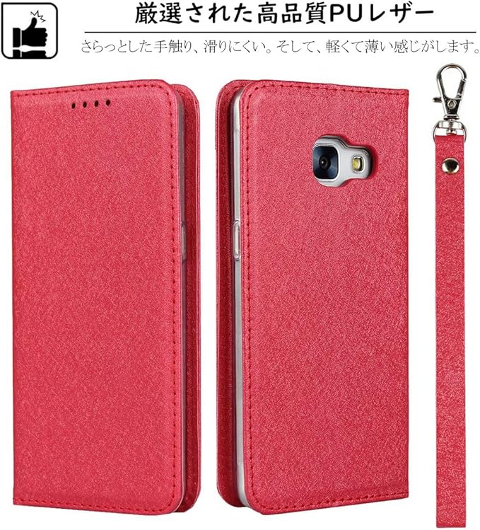 Elick Galaxy Feel SC-04J 用 ケース カバー 薄型 高級PUレザー 手帳型 マグネット式 ベルトなし ストラップ付き カード収納 ギャラクシー フィールス SC-04J docomo スマホケース レッド