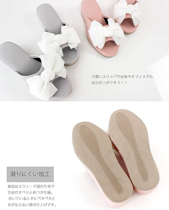 印象的な大きめのリボンがアクセントになり、豪華さを演出しています。履いているだけで、エレガントな気分になれそう。自宅用にはもちろん、ご家族、お客様用にもおすすめです。