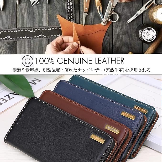 【贅沢上質ナッパレザー】天然牛革を贅沢に使用、耐熱や耐摩擦、引裂強度に優れたナッパレザーを採用される。滑らかな表面と柔かく特徴なので肌触りがとても良いです。またその防汚、撥水機能も同じく素晴らしいです。牛革自然素材としての独特風合いが満喫して、長年使い込むほど味わう経年変化を楽しんでいただけます。