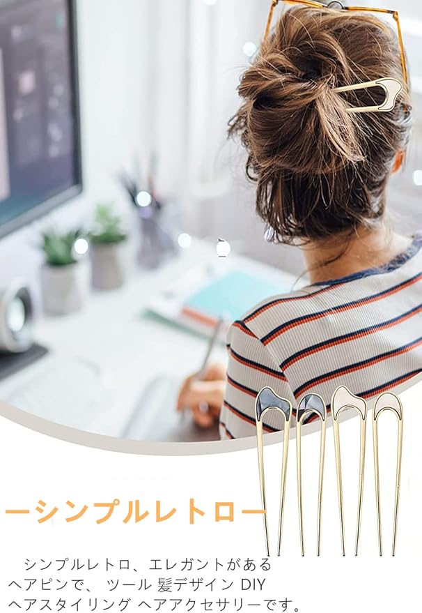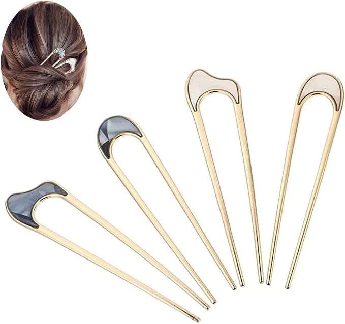 ❤【パッケージ内容】かんざしUピン2色4枚入り、サイズ:2 10cm。とても滑らかで、慎重に磨き、強くて丈夫で、髪に優しいです。