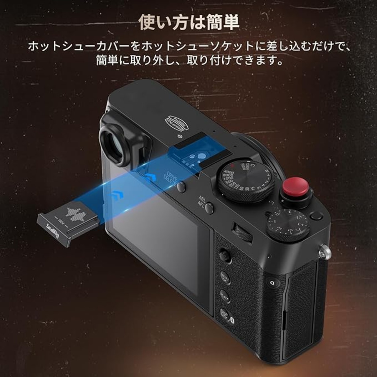 【使いやすさ】ホットシューカバーはカメラ上部にあるホットシューソケットにスライドさせるだけで簡単に取り付けることができ、取り外しと取り付けが簡単です。