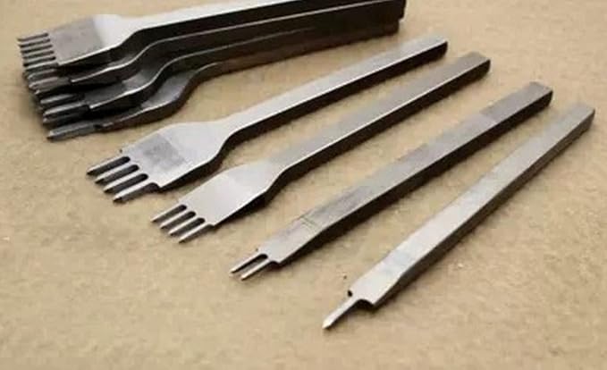 まずは革に垂直に歯を当て木槌などで打ちます。使用するのは針を入れる穴を作ったり、目印をつけるのに便利です。