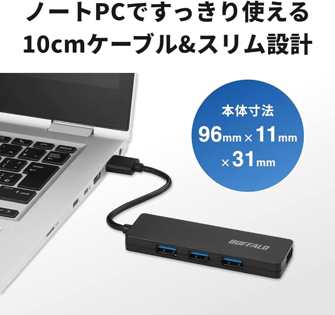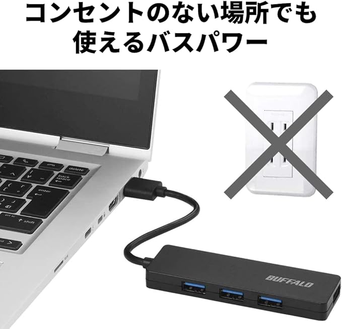 バッファロー USB ハブ USB3.0 スリム設計 4ポート バスパワー 軽量 Windows Mac PS4 PS5 Chromebook 対応 テレワーク 在宅勤務 BSH4U125U3BK | etshop