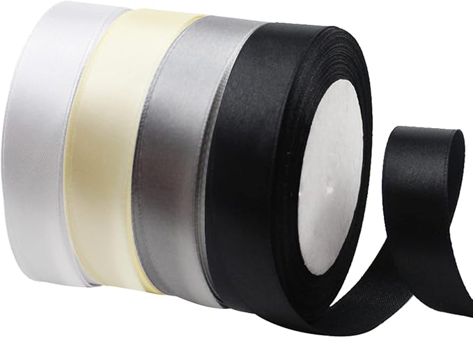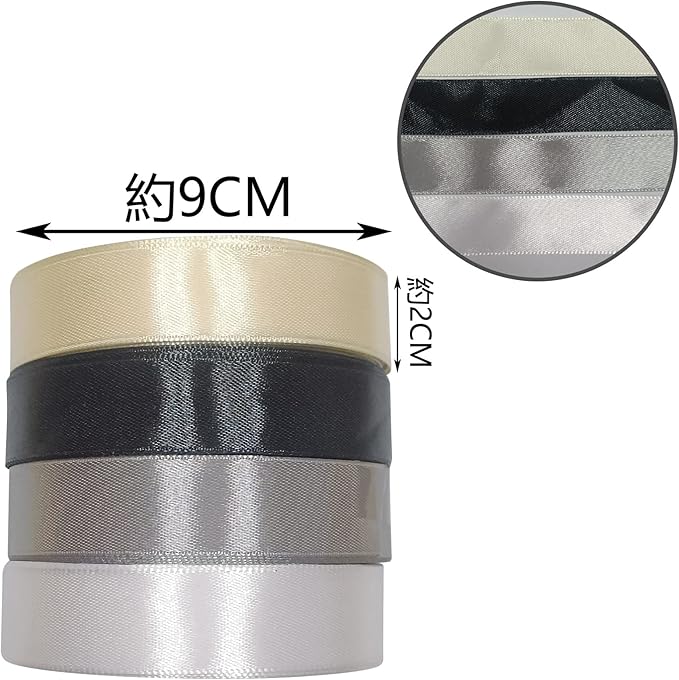 【BEAUTY PLAYER】リボン 母の日ギフトラッピング リボン 飾り ギフト ラッピング 4巻入 幅20mm 22M巻 ラッピング サテンラッピング 手芸 雑貨 工芸品 飾り プレゼント包装用 服装アクセサリー (4巻 灰色 白い 赤い 緑 幅2㎝)