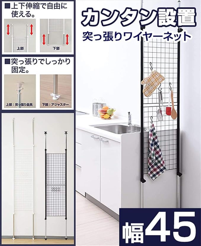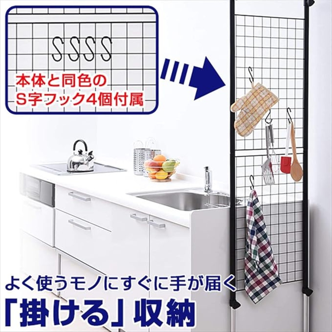 山善(YAMAZEN) 突っ張り パーテーション (ワイヤータイプ) 幅45 奥行5 高さ166.5-295.5cm (フック4個付き) 壁掛け 収納 壁面収納 天井 間仕切り 組立品 ブラック SP-45(MBK) | etshop