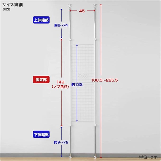 本体サイズ:幅45 奥行5 高さ166.5-295.5cm