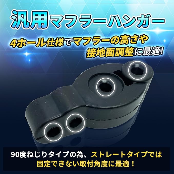 本商品は吊り下げ穴を4ホール搭載することで愛車に合わせた高さ調整が可能。排気管と本体の高さとの接触面積を減らすことで、排気管の騒音や振動発生による騒音を効果的に減らし、排気干渉を抑えることで車のパフォーマンス向上につながります。
