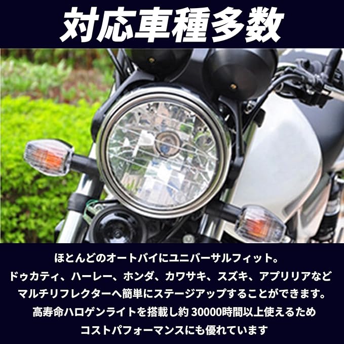 Optimister バイク ヘッドライト h4 ハロゲン cb400sf マルチリフレクター 汎用 ホーネット cb750 cb1300sf 12V 7インチ ホワイト