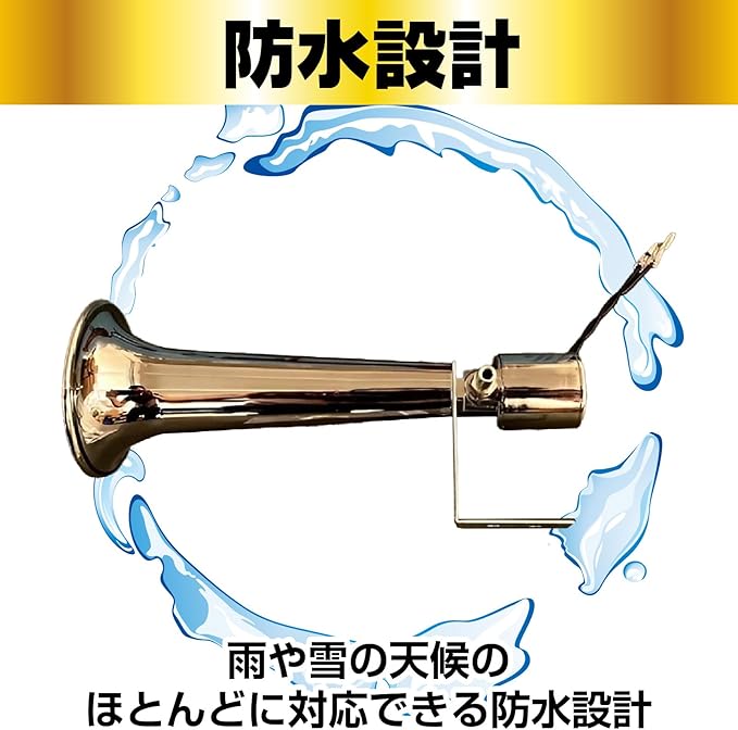 【商品】このクラクションは、トラック.ダンプカー等さまざまな車両に適しており、12.0Vおよび24Vの車種に雨や雪でも対応できる防水設計。