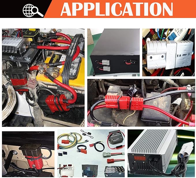▶用途:これらは、バッテリー接続、フォークリフト、バッテリー充電器、ソーラーパネル、風力発電機、レッカー車、農機具、溶接装置、ウィンチ、電気自動車などで広く使用されています。