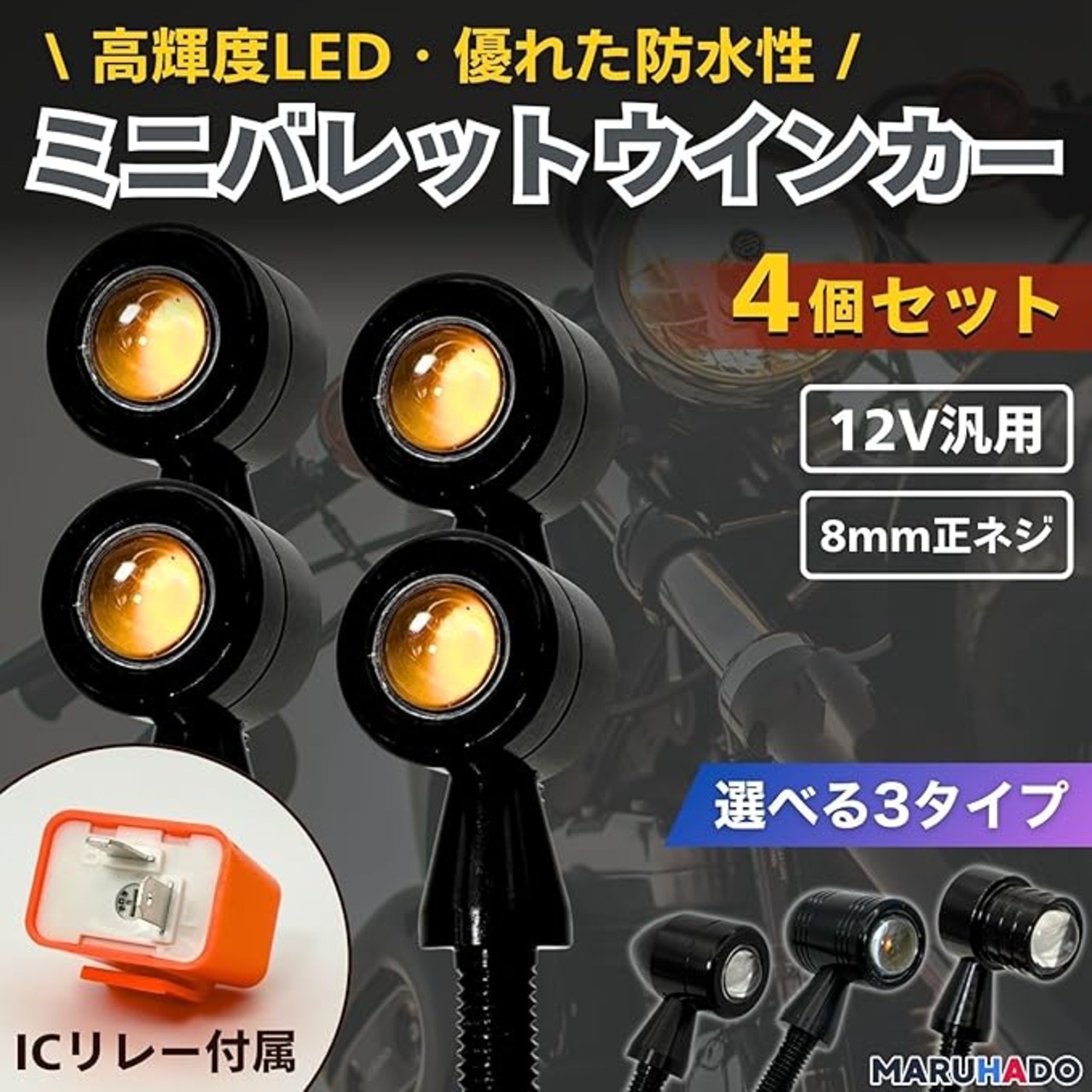 MARUHADO バイク ウインカー 砲弾型 ブレット LED 4個セット ウインカーリレー付き 12V 防水 ミニ ハーレー 汎用 タイプB