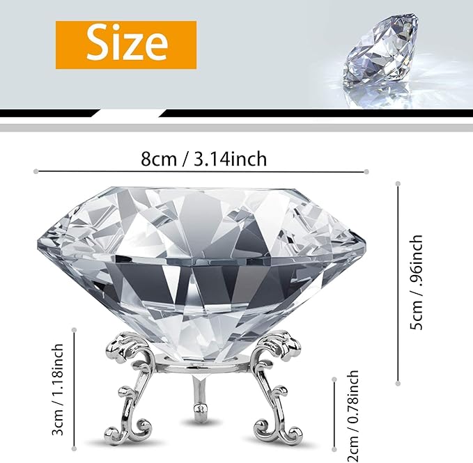 ✔️サイズ:クリスタルダイヤモンド本体サイズ直径80mm 高さ50mm 台座サイズ30mm
