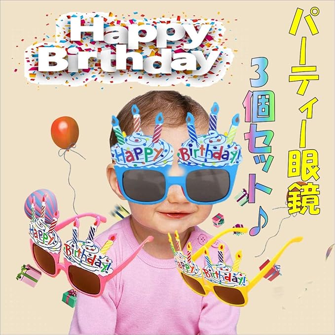 ハッピーバースデー サングラス 3色セット Happy Birthday 誕生日 バースデーパーティー おもしろ眼鏡