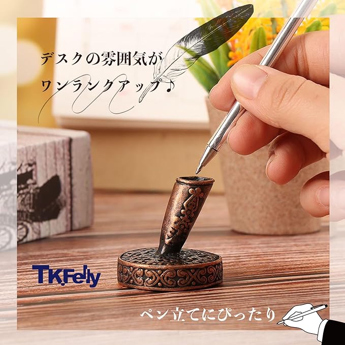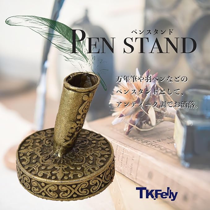 TK.Felly ペン立て ペンスタンド アンティーク レトロ 金属 万年筆 受付 ヨーロッパ調 古銅