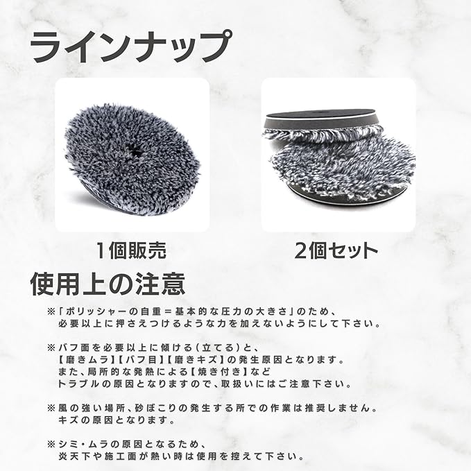 calm wish ウール バフ ポリッシング ポリッシャー 車 ハイブリッド ワックス 洗車 ロング 柔らか 研磨 艶 ソフト 仕上 羊毛 パッド 2枚