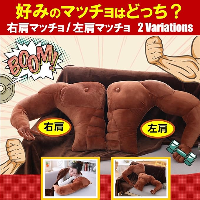 NOELAMOUR 抱き枕 腕枕 筋肉 マッチョ クッション 癒し プレゼント おもしろ 柔らか (左肩マッチョ/45cm)