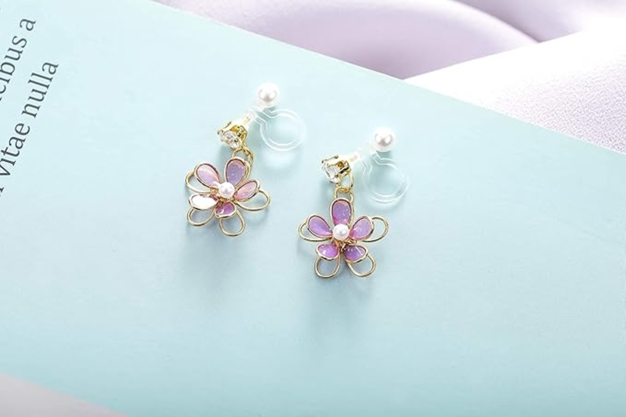 ❤【高級ノンホール イヤリング】材質:合金、18kメッキ 種類:樹脂イヤリング。手作りについて職人さんが手でこのイヤリングの花を編んで、きれいな色を塗って、高級感ある製品を作り出します。