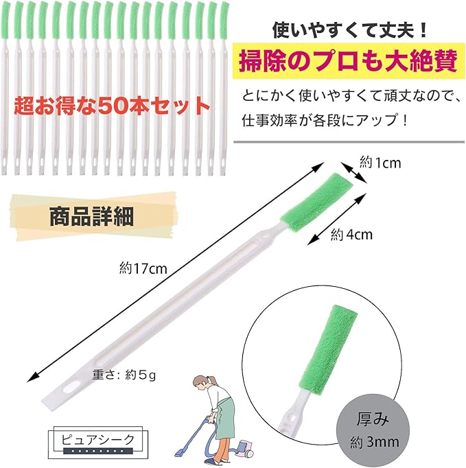 ピュアシーク エアコン隙間ブラシ 部分洗い洗濯ブラシ エアコンそうじ 50本 掃除 キッチン掃除 スポンジ スティック クリーナー