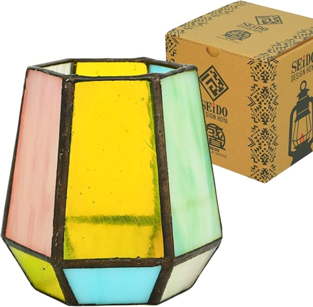 SEIDO ランタン ホヤ ステンドグラスホヤ デイツ フュアハンド アウトドアランタン交換用 ランタンカスタムパーツ ランタンシェード (マルチカラー, M)