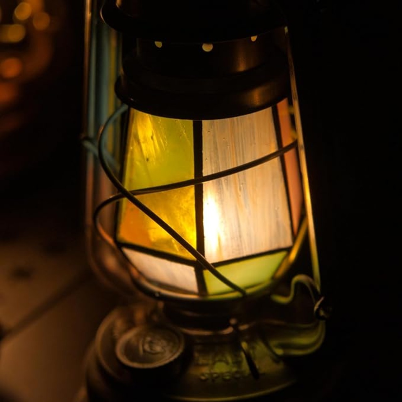 【すべてが手作りのステンドグラス 一枚ずつ異なるガラスを、職人が手作業で丁寧に繋ぎ合わせて作られたステンドグラスホヤ。一つひとつが異なる表情を持ち、世界に一つだけの特別なランタンに仕上がります。大量生産にはない、味わいとぬくもりを感じられます。
