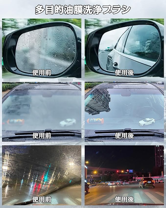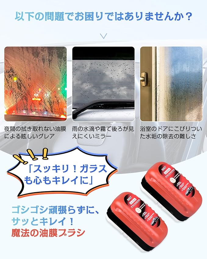 ZINQIA 車油膜取りブラシ 油膜取り 車 ガラス 2025新型【2個 一体型クリーニングブラシ】自動車の外装クリーナー 使用簡単コーティング 透明度/視認性向上 自動車/船舶/バイク/家庭用窓 マルチシーン対応