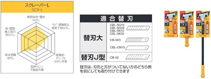 適合替刃:CBL-ON10(替刃大 折れ線無し刃)、CBL-SG10/CBL-SG50/CBL-SK10/CBL-SK50(替刃大 凄刃銀・黒)、CB-50D(替刃大 硬刃ダブル)、CB-62(替刃J型)