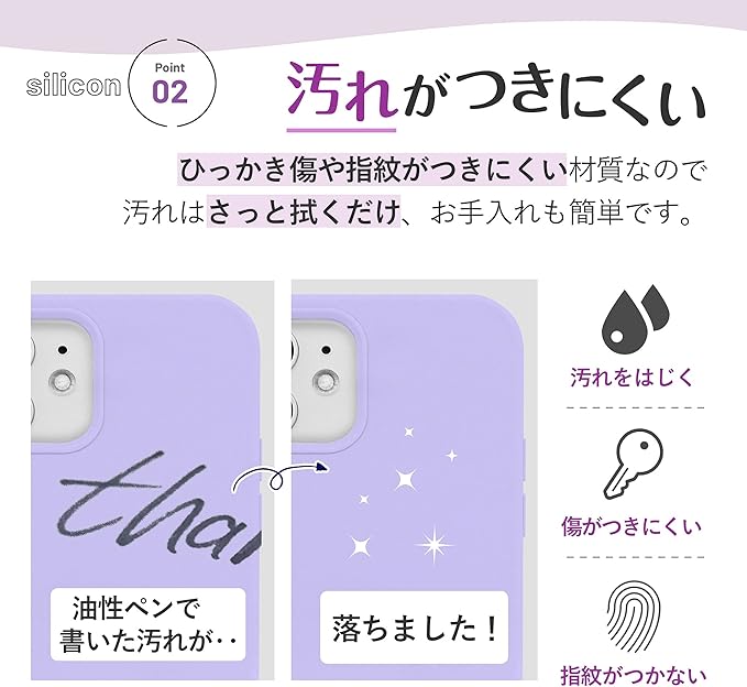 極上の手ざわりで手にしっかりフィット。耐衝撃性が高く、着脱も簡単なシリコンケース。指紋などの汚れがつきにくく、お手入れも簡単です。
