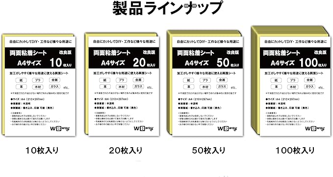 WBway 両面粘着シート A4 【100枚セット】 薄型 強粘着 シート状 サイズ297 210mm 両面接着シート 両面テープ シート 自作 多用途 半透明 シートタイプ (100枚入り)