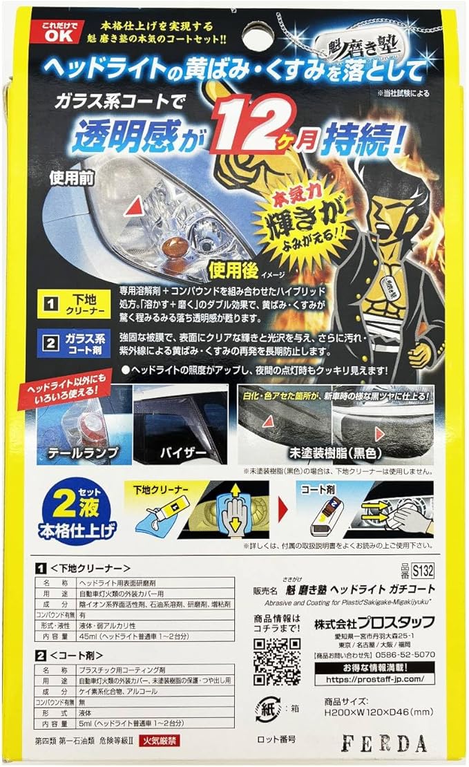 プロスタッフ(Prostaff) 洗車用品 ヘッドライトコーティング剤 魁 磨き塾 ヘッドライトガチコート クロス 12枚/ヘルパー 1/マイクロファイバークロス 1枚/手袋 1 S132