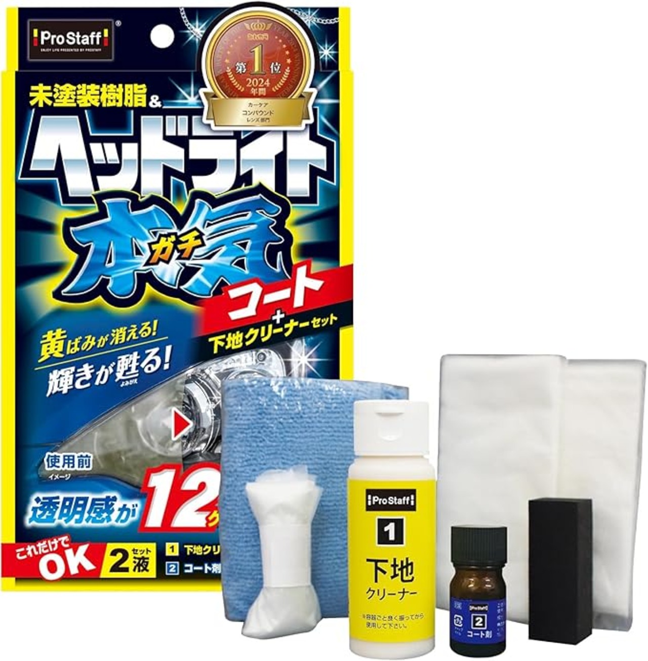 必要なアイテムがすべてセットになっているので、これだけで新車時の様なヘッドライトの輝きが甦ります