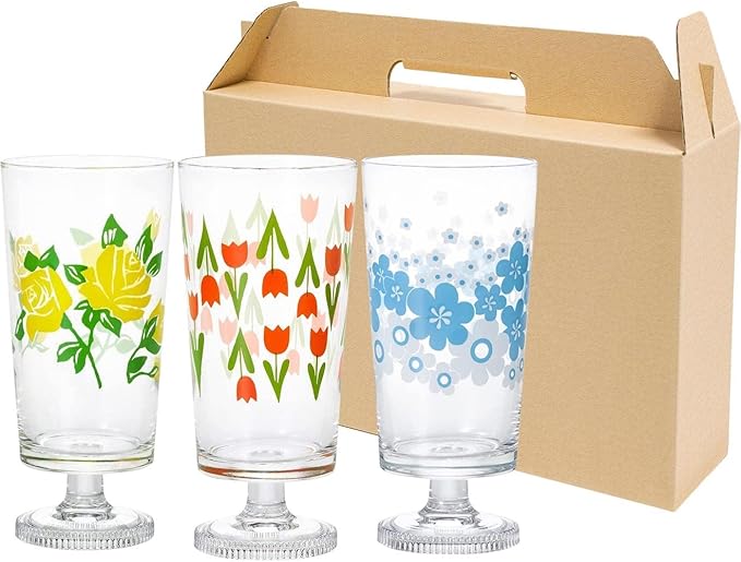 アデリアレトロ グラス タンブラー[脚付き / 305ml / 3柄アソートセット (マスカレード/コレック/花の輪) ] 専用クラフトボックス入り 日本製