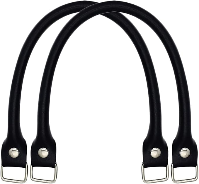 サムコス かばん 持ち手 D菅付き 本革 取っ手着脱可能 2個セット バッグ用ハンドル ストラップ 修理用 交換用 自分で取り替えられる持ち手 手芸用品 (ブラック)
