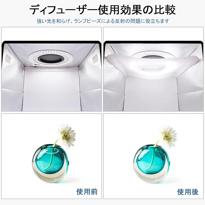 【より耐久性・丈夫で】最新のアップグレードのフォトスタジオボックス本体が揺れたり、傾いたり、ねじれたりすることはありません。お客様の意見で改良した商品です。撮影ボックスの本体は追加のサポートを必要ありません、しっかりと立つことができ、傾くことはありません。30秒くらいにボックスを簡単に組み立てられます。サイズ:40*40*40cm