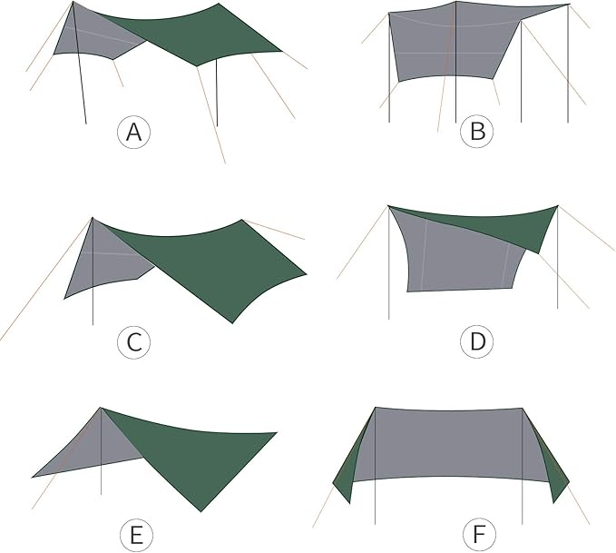 高い耐久性:210D高密度なポリエステルを採用、加えられた強さのための継ぎ目の二重ステッチ、コーナー部分はバータックで補強加工がされているので、耐久性に優れ、タープが緩んだり破れたりするのを防げます。固定バックルは8個あり、タープの安定性とセッティングの可能性を高めます。