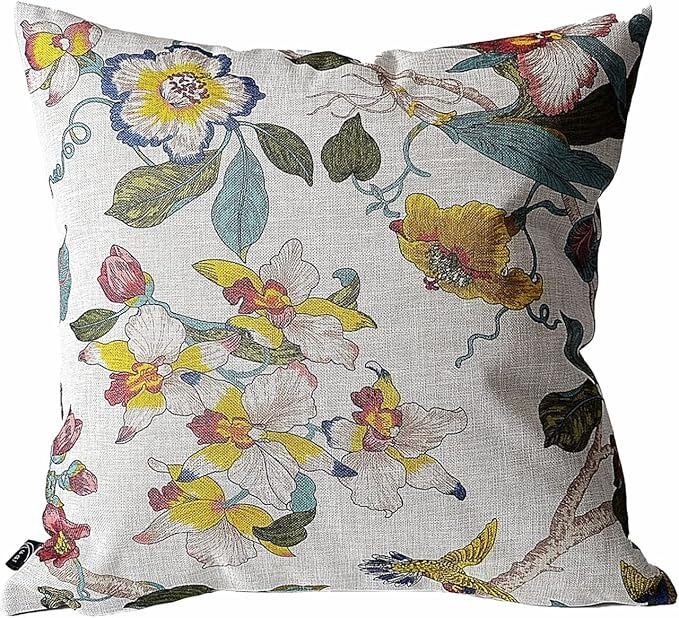 Kuai クッションカバー 45cm 60cm 30 50cm 花柄 オリエンタル アンティーク シノワズリ アジアン 北欧 インテリア ポリエステル (45 45cm, ホワイト)