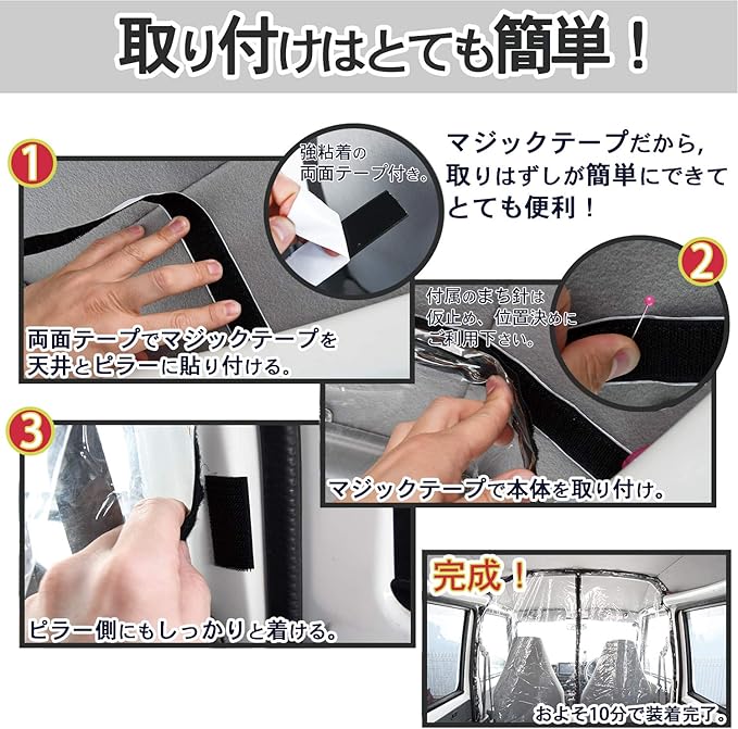 [MRG] 車内 仕切り 間仕切りカーテン 軽バン 軽自動車 ビニール ビニールカーテン 車内パーテーション フィルム パーテーション 冷房 暖房 透明 ファスナー付き 防護スクリーン 飛沫防止 分煙 エアコン効率 汎用 乗用車 タクシー ワンボックス ミニバン (ブラック)